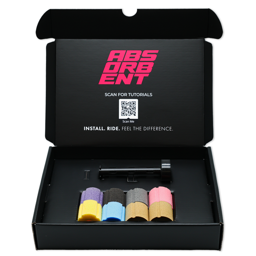 Absorbent permet d’obtenir une suspension plus fluide, plus sensible et plus constante sur toute la course, avec un gain réel en confort, grip et contrôle, sans changer vos suspensions actuelles.